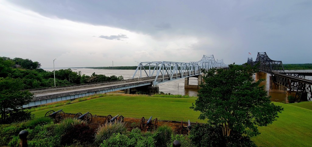 Cycling took us to the Vicksburg National Military Park and the Natchez Trace Parkway. The Vicksburg National Military Park was moving. We were able to ride the roadway shared with cars and crossed both the North and South battle lines of the Civil War. Vicksburg was an important lifeline for the North. Per President Lincoln, Vicksburg was “the key and the war could never be brought to a close until that key was in our pocket” July 4, 1863 is when Vicksburg officially surrendered.