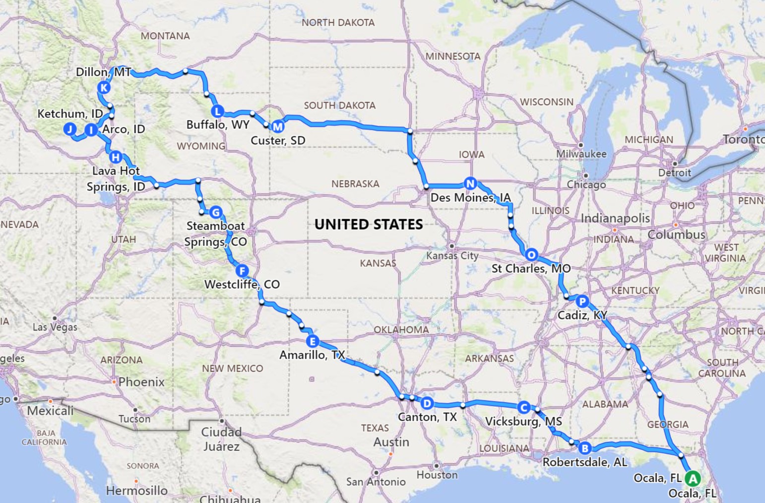 Escaping the heat of Florida is our goal. We plan to spend several weeks in Steamboat Springs, Colorado and then make our way to Idaho for six weeks. Then we are off to Montana and, a favorite of ours, the Black Hills of South Dakota. New places to explore and old ones to enjoy once again!