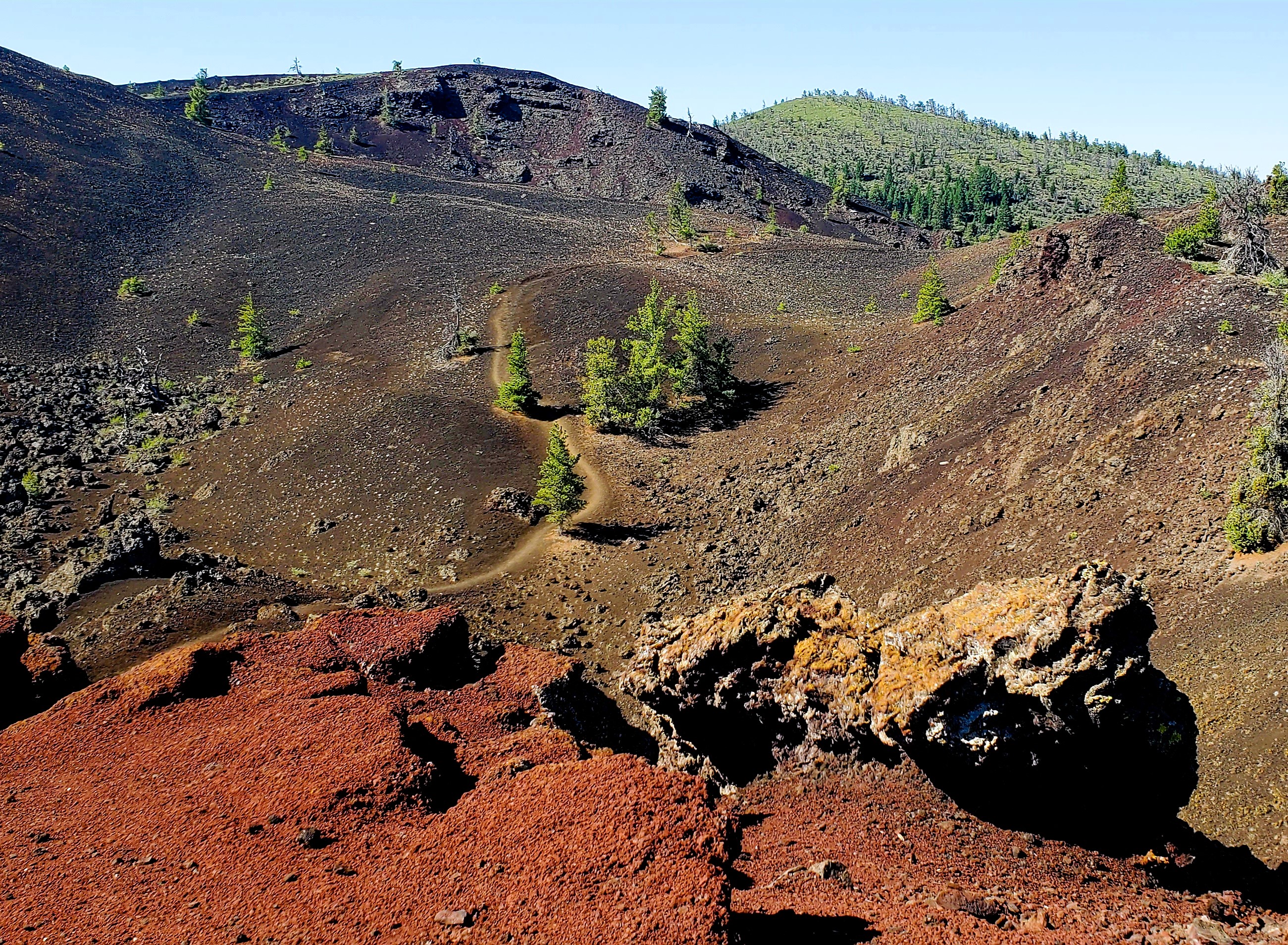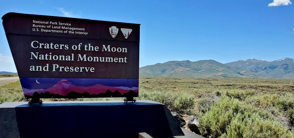 The highlight of the trip to Arco was spending four days exploring Crater of the Moon National Monument. In 1923 a geologist described the area as, “The surface of the moon seen through a telescope.” In 1924 (100th anniversary this year) Calvin Coolidge proclaimed the area a national monument preserving “a weird and scenic landscape, peculiar to itself.”