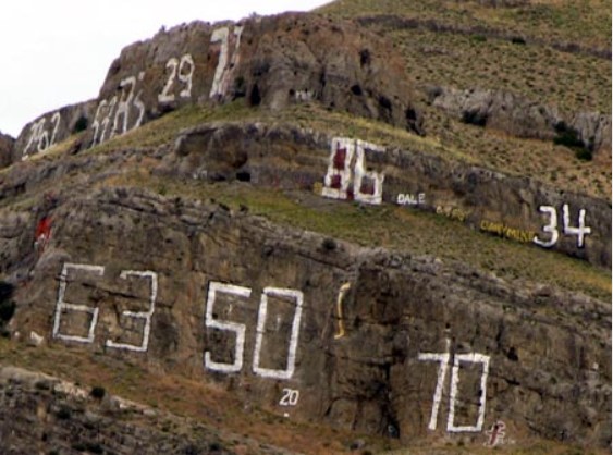 There is a 100+ year tradition in Arco, the Butte County High School seniors have painted their graduating year on the nearby mountain side. The first class to do this was in 1920 and the tradition continues. The mountain side is known as Number Hill.