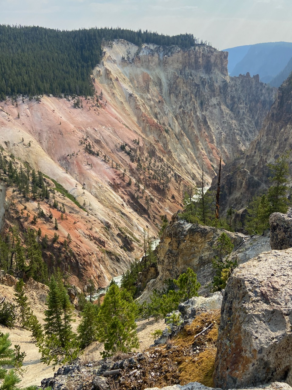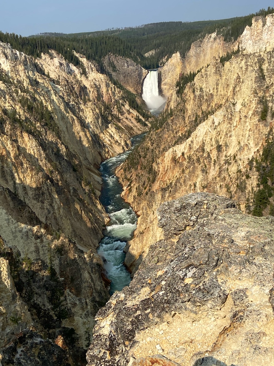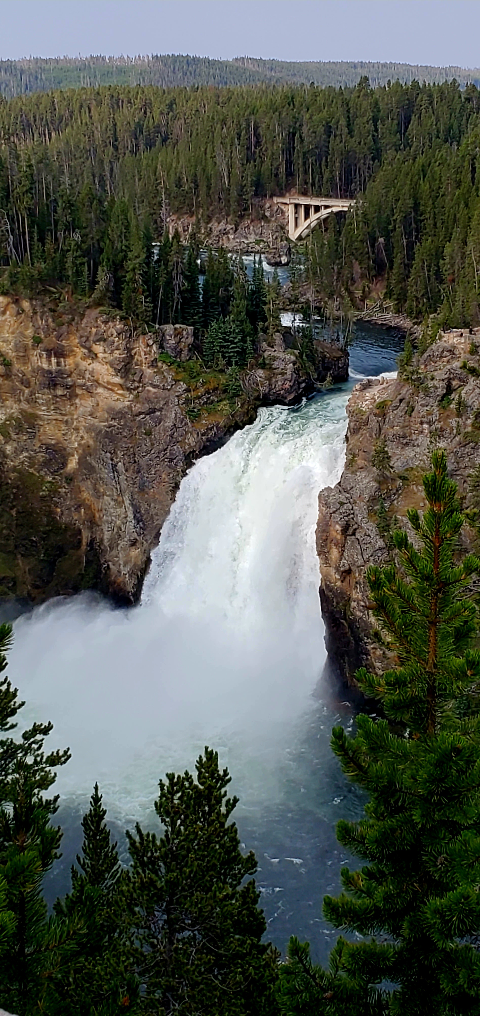 The Upper Falls is 109 feet high and Lower falls is 308 feet high with a volume of water flowing over the falls at 63,500 gallons/second at peak runoff in the spring to 5,000 gallons/second in the autumn. It is an amazing amount of water. The enormity of the canyon is hard to absorb. So vast!