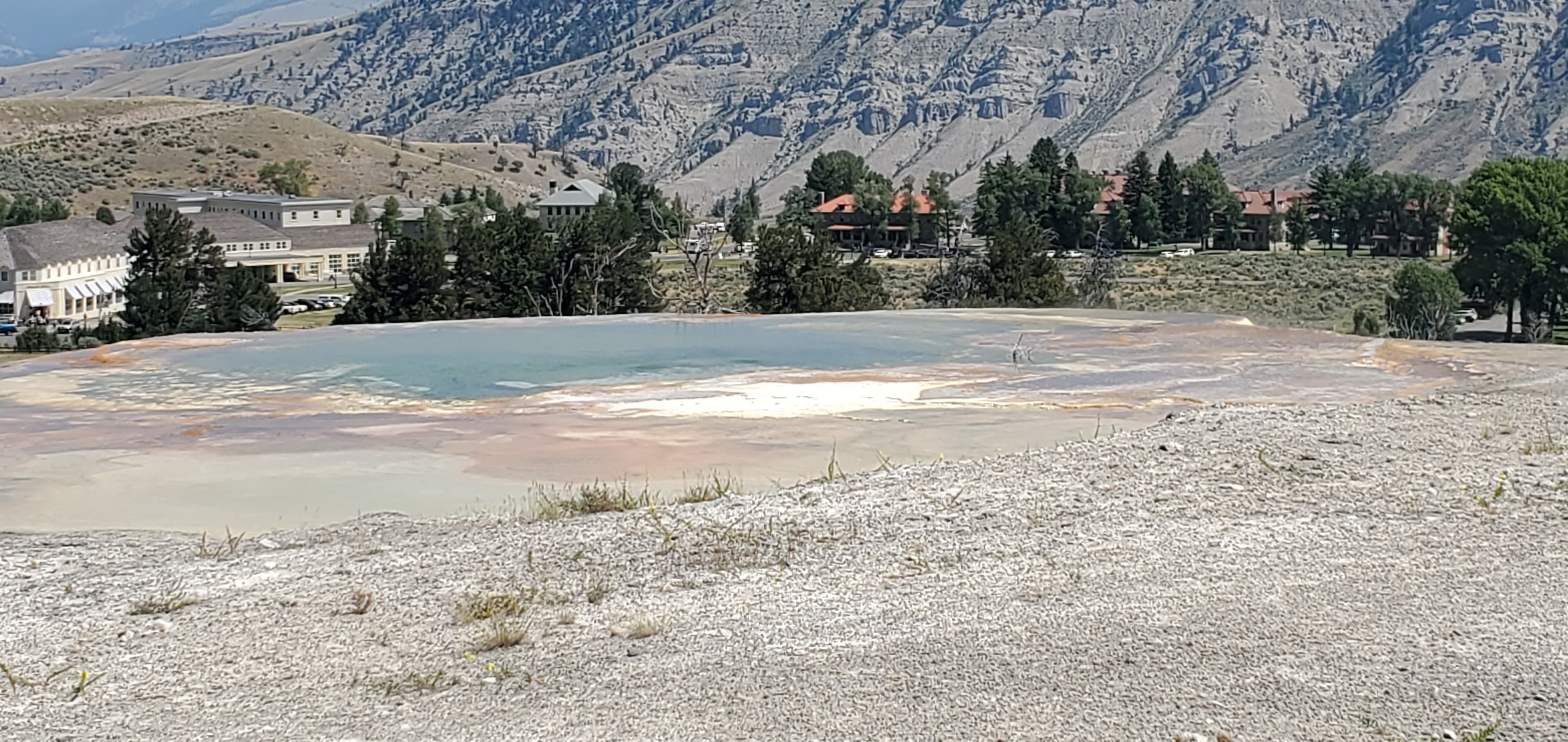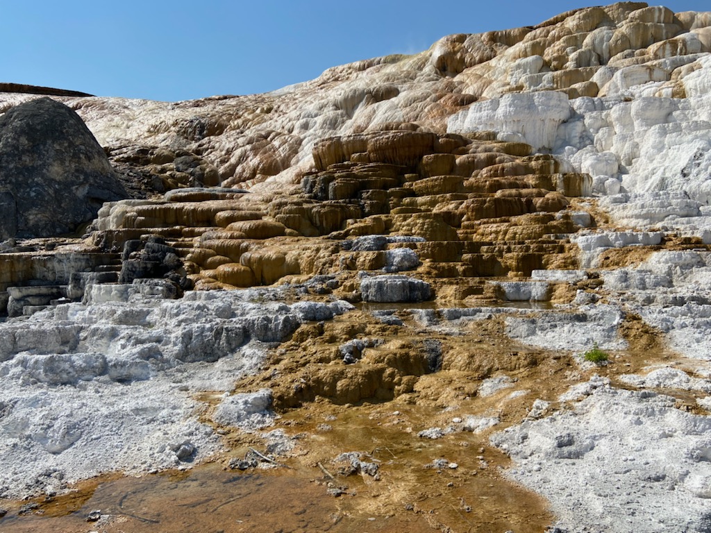 Bozeman is 93 miles north of Yellowstone National Park. We had been to the park several years ago and always wanted to go back and see more of this enormous national park. We focused on Mammoth Hot Springs and the Grand Canyon of the Yellowstone. We opted to leave the Tin Can Lulu at the campground in Bozeman and spent a night at the Mammoth Hot Springs Hotel in one of their cabins.