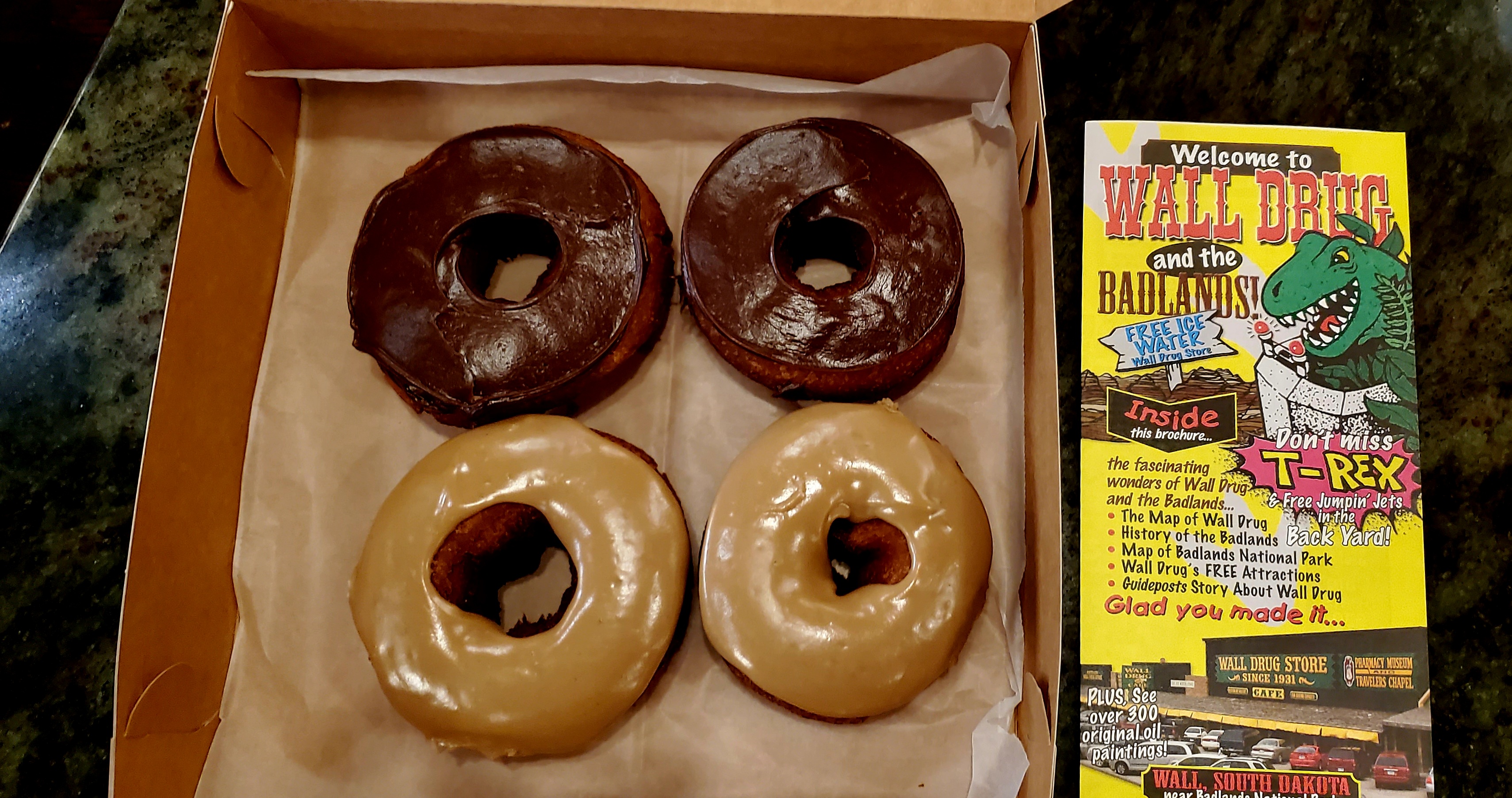 Have you heard of Wall Drug, where coffee is five cents and ice water is free? This tourist attraction has been around since 1938 when Ted Hustead bought the local pharmacy. From the moment you are in South Dakota you see road sign messages about Wall Drug. The best part of this tourist attraction are the donuts made fresh daily … they are yummy!