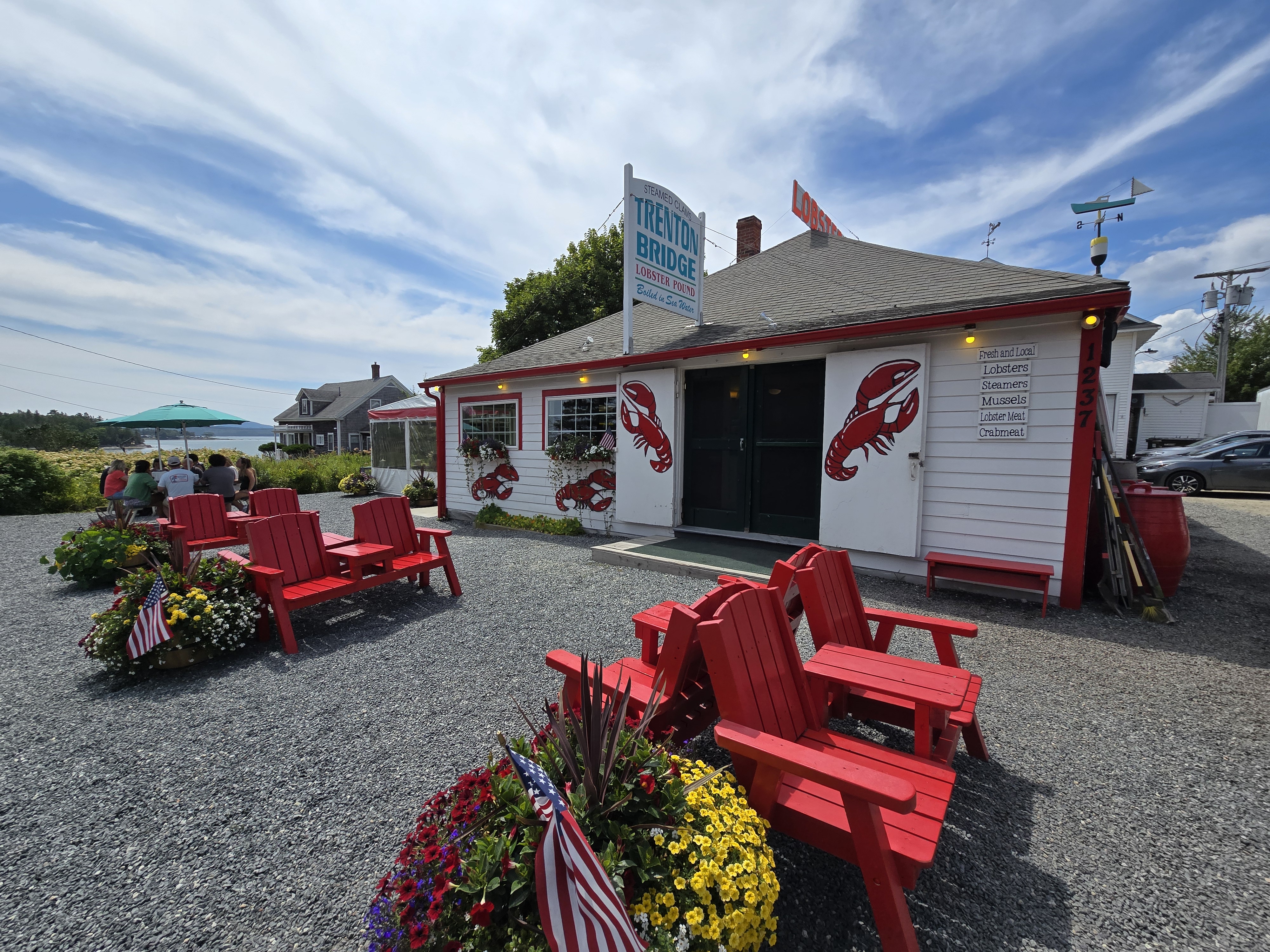 The traffic out of Bar Harbor was a bit busy but we were able to spy an interesting lobster pound a few miles out of town. The lobster rolls we had for lunch were almost as good as the one Earle had during the Cabot Trail (Nova Scotia) tour.