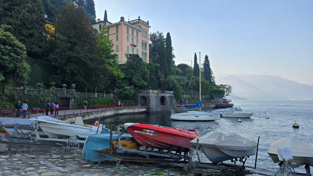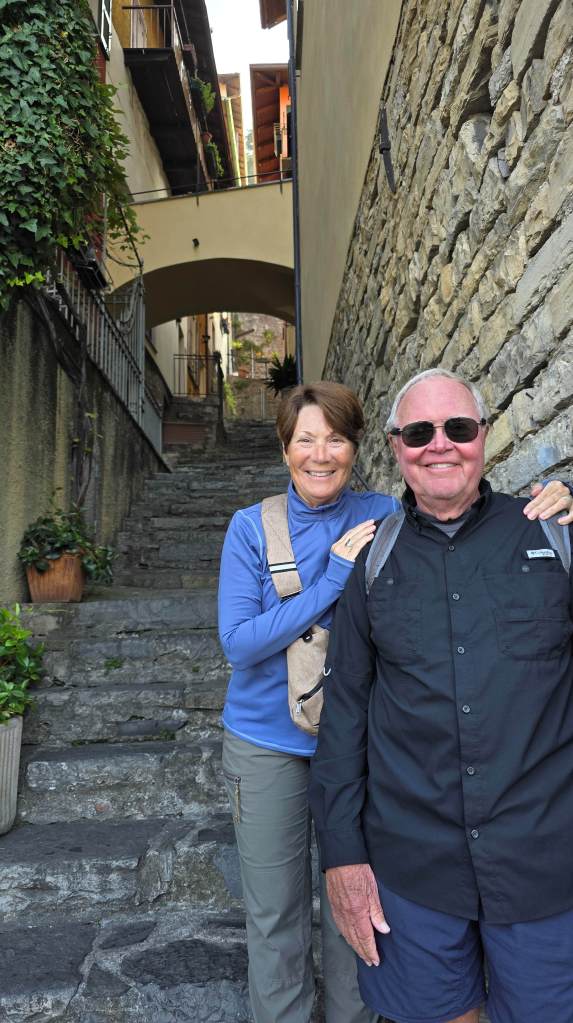 We had a wonderful day exploring two towns on Lake Como, Bellagio and Varenna. Getting to Bellagio was an experience. We were on a small roadway that hugged the lake. We had a local bus driver (and a smaller bus) for the day, who knew how to maneuver thru the narrow turns and oncoming traffic, with barely a hand width of space between the bus and oncoming vehicles. Italian drivers are truly masters!!