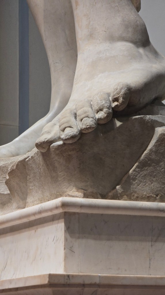 Once we arrived in Florence we immediately were immersed into this city. We had a local guide who escorted us to the Galleria dell’Accademia the home to Michelangelo’s David. David is a masterpiece of Italian Renaissance sculpture in marble created from 1501 to 1504 by Michelangelo. The height is 17 feet and it weighs 6.2 tons. David was the first colossal marble statue made in the High Renaissance, and since classical antiquity, a precedent for the 16th century and beyond.