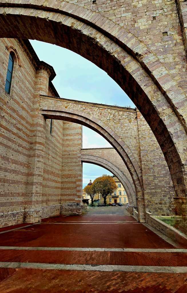 Assisi is a hill town in central Italy’s Umbria region. It was the birthplace of St. Francis (1181–1226), one of Italy’s patron saints. The Basilica of St. Francis is a massive, 2-level church, consecrated in 1253. Its 13th-century frescoes portraying the life of St. Francis. The crypt houses the saint’s stone sarcophagus.